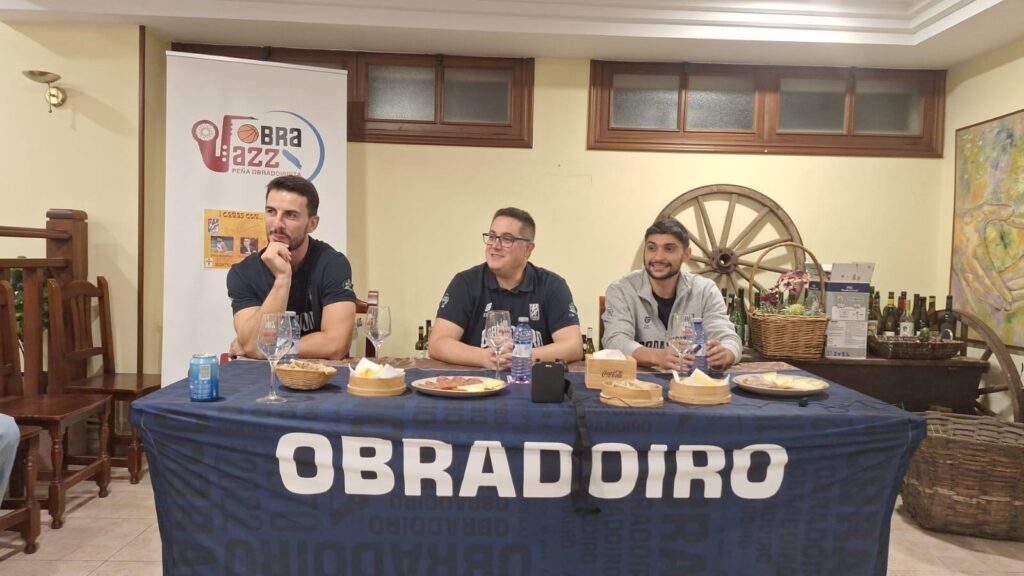 La peña obradorista Obrajazz reunió este pasado martes en sus tradicionales «Cañas con..» , al entrenador Diego Epifanio y a los capitanes Sergi Quintela y Leo Westermann. El lugar de encuentro fue el Restaurante Afiador de la capital compostelana y como siempre en un gran ambiente de baloncesto los invitados contestaron a todas la preguntas de la afición.