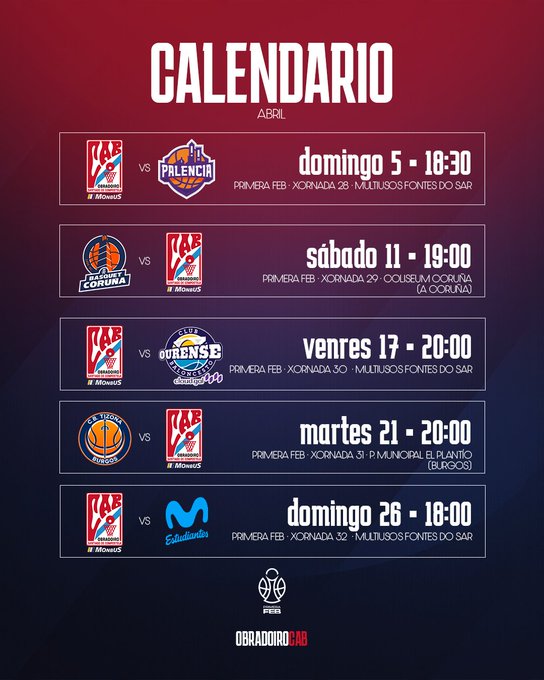 Quedan siete jornadas de liga, y el equipo compostelano afronta su particular Camino de Santiago con la intención de llegar a la meta y alcanzar el tan ansiado ascenso, que hace unos meses se veía casi imposible por la marcha inmaculada de su gran rival, los vecinos del Basquet Coruña, pero que ahora tras el traspiés de los coruñeses en Palencia y la gran racha de los picheleiros en todo este año 2026, hacen concebir esperanzas fundadas, muy complicadas pero fundadas de pelear por el primer puesto.