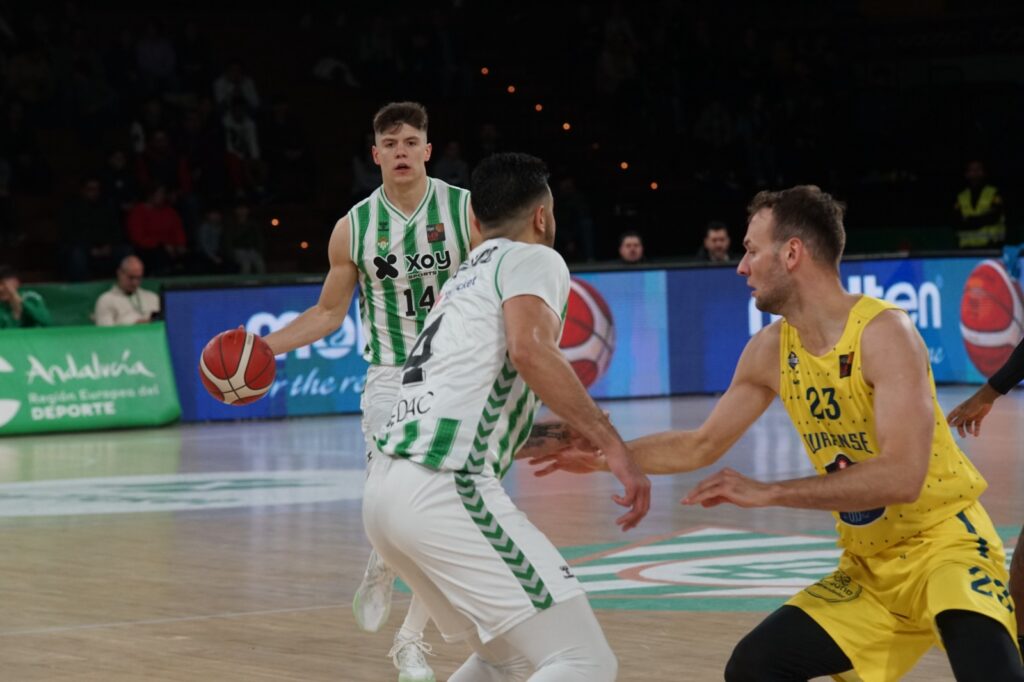 Sacar a Almazán de inicio para organizar a la defensa es un acierto. Hace que el rival no encuentre el camino fácil y se empiece con un partido igualado. A partir de ahí, el equipo debe aprovechar la ocasión. Eso sí Ourense también quería ganar y en el primer cuarto dio la cara. Con un triple de López se ponían por delante (5 – 7) y Bisschop se borraba de la primera mitad con dos faltas en la primera mitad del cuarto. Pero, aun con errores q hay que corregir, se ve un juego colaborativo buscando el jugador liberado. Sin quitar mérito al rival, Ourense también empezó con mucha intensidad defensiva obligando a jugarla de tres la mayoría de los ataques. Acercarse a canasta era difícil. Y el Tapón de Gill a Kuksiks hacía ver que no lo iban a poner fácil. Unos últimos minutos fallones de ambos equipos hacen que sea ajustado el marcador que terminan el cuarto con un intercambio de triples Rodríguez para Ourense baloncesto y Polanco para el Betis.