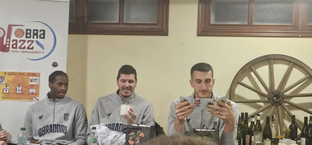 Como es tradicional a cada final de mes, la Peña Obrajazz organiza una quedada de todos sus socios con algunos jugadores, donde en un ambiente distendido y con la inestimable colaboración del Restaurante Afiador, los jugadores invitados departen anécdotas, comentarios y curiosidades con los peñistas, que pregunta de todo a los jugadores que acuden.